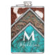 Lindo, falso, pelo marrom e branco, acabamento em couro falso com pintura incrustada de turquesa e mistura de mármore de turquesa falsa. Adicione seu nome com os modelos de inicial de monograma e sobrenome.