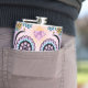 Crânio roxo do Dia de los Muertos com flores coloridas, diamante e coração.