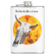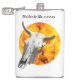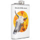 Crânio de vaca contra o fundo do fogo e chamas. Frasco de quadril confortável. Você pode alterar a imagem e pode alterar ou excluir o modelo de texto Strikes para a medula. Divirta-se!