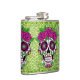 Aqui está um crânio de açúcar excelente em um balão azul brilhante de fundo. É um frasco fantástico para quem é fã da arte Day of the Dead (Dia de los Muertos).