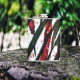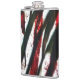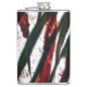 Foto de abstrato, com faixas largas e aleatórias, entrelaçadas, cores escuras, pretas, verdes-escuras, oliveiras e assemelhados brancos, caules de bambu.