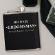 Hip Flashes personalizados são presentes de manutenção de excelente para a festa do noivo. Essa design de tipografia minimalista é escrita em tipografia moderna e ousada e pode ser personalizada para cada um dos padrinhos de casamento. O nome modelo está pronto para você adicionar o nome do padrinho de casamento, os nomes da noiva e do noivo e a data do casamento. Este design tem uma paleta de cores preta e branca. Procure na nossa loja cores de alternativo e coordenando presentes de festa de casamento.