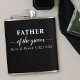 Hip Flask personalizado para o Pai do Chão. Este design de tipografia minimalista é escrito em uma escrita elegante e na tipografia moderna. O nome modelo está pronto para você adicionar os nomes da noiva e do noivo e a data do casamento. Este design tem uma paleta de cores preta e branca. Procure na nossa loja cores de alternativo e coordene presentes de manutenção para a sua festa de casamento.
