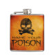 Chame seu veneno! Este design do frasco apresenta humor escuro - um crânio e bósforos colocados contra um fundo dourado angustiado e laranja, com palavras brilhantes a preto. Perfeito para uma festa de Halloween ou fantasia, também seria um presente divertido ou um favor de festa para qualquer um que gosta de viver na periferia!