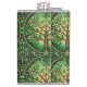 "Decorative flask featuring a vibrant tree design with intricate branches and leaves in shades of green and red, evoking a lush, nature-inspired theme."