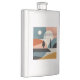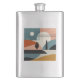 Uma paisagem abstrato de uma cena do deserto com linhas e formas em tons de marrom, laranja, turquesa, bege, bronzeado e preto.