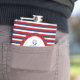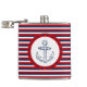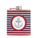 Design náutico com decoração da âncora desenhada à mão sobre fundo riscado a azul, vermelho e branco