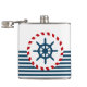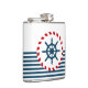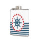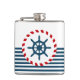 Design náutico com decoração da roda de vela em forma redonda sobre fundo listrado a azul e a branco