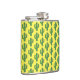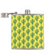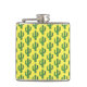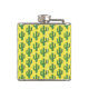 Este incrível frasco de quadril com padrão apresenta uma imagem de arte digital de um cacto verde giro coberto em picles verdes escuros. O cacto tem olhos patetas e um sorriso no rosto.