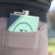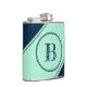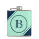 This flask features a centered double circle in blue over a mint green background. Personalize the text field with an initial letter or customize using the design tool to select a font color, size, and style your prefer.