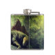 Este frasco tem um dinossauro assustador nele.