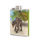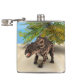 Renderização digital 3D de um dinossauro ceratopsiano Einiossauro sobre uma palma verde e o fundo azul do céu