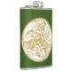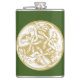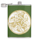 Intrair cães brancos e dourados em design em forma de disco em fundo verde.