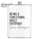 Frasco Adulto Engraçado - "Ser um Adulto Funcional Todos os Dias" Este frasco de aço inoxidável elegante diz o que todos pensamos: "Ser um adulto funcional todos os dias parece um pouco excessivo." Um presente viciado para aniversários, festas de solteiro ou qualquer pessoa que mereça um gole e uma risada.