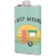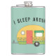 Um frasco engraçado tem um texto personalizável "eu durmo" com um trailer de acampamento RV, de cor amarela e verde, em fundo verde. Perfeito para aqueles que amam o estilo de vida do acampamento RV em parques de campismo, rv e locais remotos fora da rede - onde estacionar sua plataforma em vários lugares por dias, semanas ou meses é apenas uma forma de viver.