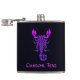 Ícone Escorpião. Ícone roxo inspirado por design de nó celta. Cor de fundo personalizada. Texto personalizado.