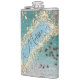 Uma relíquia brilhante de estrelas douradas chovendo em um pano de fundo azul teal ombre para talhar extra. Pode ser personalizado com um nome em um cartaz de mortalha para torná-lo único. Víbulas de brilho cerâmico.