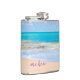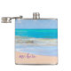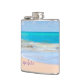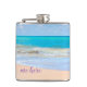Uma bela praia tropical com as palavras "eu aqui". Personalize com o seu texto. Água turquesa e areia branca, dedos na areia, felicidade total das férias.