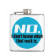 Este frasco de geologia da anca apresenta um logótipo azul com o texto "Não. Não sei o que é aquela rocha." Para aqueles que recebem pedidos demais para dar nomes a rochas misteriosas.