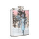 Renderização digital 3D de uma bela fada de gelo num fundo de floresta de inverno