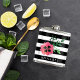 Coloque sua libação favorita em estilo! O frasco apresenta listras brancas e pretas chicas com uma flor úmida bonito, cor d'água, em cor rosa vibrante, com folhas verdes. Personalize com um monograma, nome ou texto de sua escolha! Um presente divertido de madrinha.