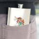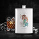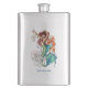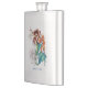 Sereia de cabelos vermelhos vestindo joias de ouro. A sereia tem uma cauda verde e azul. Ao redor da esmeralda está um cavalo marinho, conchas de água e conchas de água geladas em um pano de fundo azul