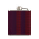 Balão de aço inoxidável com fundo de declive vermelho, com as palavras "Feliz Natal" numa escrita branca elegante e fluente. O frasco tem um boné prateado e uma dobradiça, e o design global é festivo e moderno.
