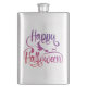Feliz saudação de gradiente do Halloween com bruxa e gato voadores