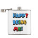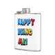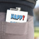 Branco plano com letras grandes de cor primária. "Feliz Ser Eu"