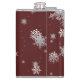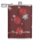 Aproveite suas bebidas alcoólicas favoritas neste feriado com um Red Enfeites de natal Vinyl Wrapped Flask. Design de fenda apresenta um trio de Enfeites de natal pendurados com flocos de neve em queda e um fundo vermelho escuro. Itens adicionais de presentes e feriados disponíveis com este design também.