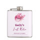 "Vamos lá, meninas! Celebre a última cavalgada da noiva com estilo com nosso frasco rosa personalizado, projetado especialmente para o seu fim de semana da despedida de solteira Last Rodeo. Este frasco elegante e atrevido é o acessório perfeito para a sua escapada selvagem no Oeste americano, com um acabamento rosa ousado e personalização opcional para torná-lo ainda mais especial."