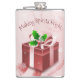 Aproveite a sua bebida adulta favorita com este frasco de presente de Natal vermelho festivo. O Flask design apresenta um presente de Natal vermelho vibrante adorado com bagas ocas e flocos de neve caídos contra um elegante pergaminho e folhas de fundo e o ditado "Fazer Espíritos Brilhante" que você pode deixar ou personalizar com seu próprio ditado. Itens adicionais de presentes e feriados disponíveis com este design também.