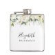 Cantil Flask para Chá de Noiva com Rosas Brancas e Folhag