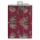 sur un fonds de broderie fleurie dans les tons rouges, et doré, d'inspiration medievale et renaissance.