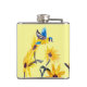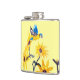 Um frasco para amantes de pássaros com girassóis amarelos brilhantes e pássaros azuis, da minha pintura de vidro original ©Annabel Potter