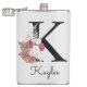 Garrafa monogramada cor-de-rosa Boho inicial, presente perfeito para uma despedida de solteira ou outra celebração divertida e feminina. Personalizado com a letra K monogramada e um nome.