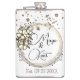 9n este frasco de casamento de na moda é uma elegante coroa floral de hibisco de ouro onde você pode personalizá-la com nomes e anos estabelecidos junto com gotas de ouro que caem criando vibrações românticas quicas.