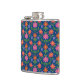 Um frasco da anca embrulhado em vinil, com um padrão colorido de flores e Bolinhas laranja e rosa em um fundo azul profundo que você pode mudar se quiser. (Preto, Branco, Amarelo Ouro e Turquesa são alternativos excelentes!) Parte da coleção Posh & Painterly 'Rangoli', este padrão bonito, marcado pode ser ajustado para ajustado qualquer um dos frascos da anca.