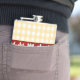 Frasco de bebendo bonito, feito na bandeira alemã, em cor vermelha, amarela e preta, com um padrão verificado de gingham amarelo e branco, na metade superior do frasco. A metade inferior do frasco é feita em preto sólido, com gráficos de uma fita vermelha de borda dourada, com flores de edelweiss brancas, ao longo do meio. Personalize o texto branco, na frente, para você mesmo ou como uma ideia encantadora de presente.