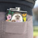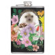 Um ouriço bonito sentado entre flores coloridas de verão num pano de fundo preto
