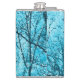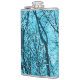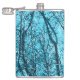 Efeitos cristalizados, especiais, ajudaram a criar, esta fotografia gráfica, de uma floresta arborizada, no final, à tarde, mostrada em cores de, preto, azul-azure e branco.