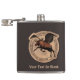 Uma mancha de couro que ostenta o logotipo da mítica Flying Moose Aviation em Talkeetna, no Alasca, como vestido pelos pilotos arbusos da empresa. Apresenta uma alça sobreposta a um círculo com texto a ler "FLYING MOOSE AVIATION", "TALKEETNA, AK" e "ESTD 1957". Adicione seu próprio texto adicional. Voos, desembarques de geleiras, carga, caça e cartazes de pesca. Voamos, nos diga aonde quer ir.