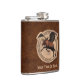 Uma mancha de couro que ostenta o logotipo da mítica Flying Moose Aviation em Talkeetna, no Alasca, como vestido pelos pilotos arbusos da empresa. Apresenta uma alça sobreposta a um círculo com texto a ler "FLYING MOOSE AVIATION", "TALKEETNA, AK" e "ESTD 1957". Adicione seu próprio texto adicional. Tudo é sobreposto a uma imagem de fundo de couro marrom. Voos, desembarques de geleiras, carga, caça e cartazes de pesca. Voamos, nos diga aonde quer ir.