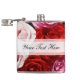 Um belo e elegante frasco de anca com rosas em vermelho, rosa e branco. Perfeito para amantes de rosa, onde você pode personalizá-lo com seu próprio texto, seja um nome, ou uma citação.