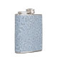 Design gráfico, das folhas Florais, esboçadas em padrões texturizados, em pano de vidro, com cores, de azul violeta, cinza azul, preto e branco.