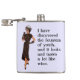Frasco de 6 oz. lavanda, envolto em vinilo, com uma imagem vintage da década de 1940 de uma mulher inteligente segurando um copo de vinho. O texto diz, "Eu descobri a fonte da juventude, e ela se parece e tem gosto muito de vinho." Ver portas copos e vidro de tiro correspondentes. Veja toda a coleção de Frascos Patrióticos dos anos 40 na COMIDA/BEV | Seção pratos. Nota: A opção de exibição frontal não aberta foi fotografada pelo Zazzle com uma ligeira inclinação, de modo que a imagem aparece fora do centro. A opção de exibição frontal aberta, no entanto, foi fotografada corretamente. Aqui a imagem está centrada. A imagem está também centrada na opção de visualização "in situ".