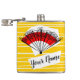 Design Whimsical desenhado no estilo retrô, com uma lembrança de fã antiga de um feriado espanhol sobre um fundo listrado ouro amarelo. Um design personalizável em preto, branco, vermelho e amarelo para você personalizar com seu próprio texto, imagens e ideias. Uma imagem de arte digital original.