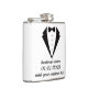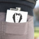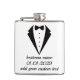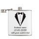 Adicione sofisticação a qualquer celebração com nossa garrafa clássica com design de smoking. Esta garrafa premium de aço inoxidável de 6oz apresenta um design elegante de gravata borboleta preta e três linhas de texto personalizáveis, perfeitas para adicionar nomes, datas ou mensagens pessoais.