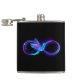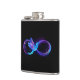 Símbolo luminoso, roxo e infinito com beija-flor azul voadora, luminosa, em fundo preto. Neon.