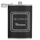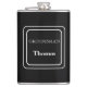 Frasco envolvido em vinil é mostrado em uma cor sólida preta com um nome de padrinho de amostra.